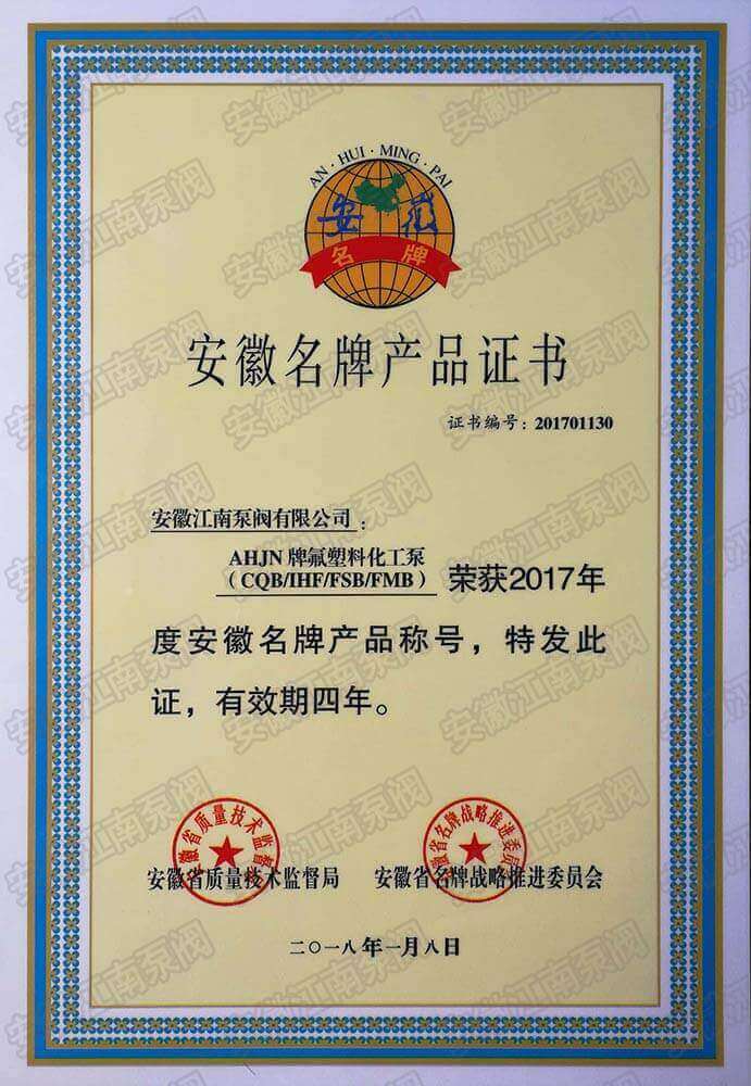 安徽江南泵閥有限公司榮獲安徽省名牌產(chǎn)品,主營(yíng):氟塑料泵,不銹鋼泵,耐腐蝕化工泵,品質(zhì)卓越,行業(yè)領(lǐng)跑企業(yè),科研生產(chǎn)型企業(yè)20年鑄就行業(yè)輝煌!...