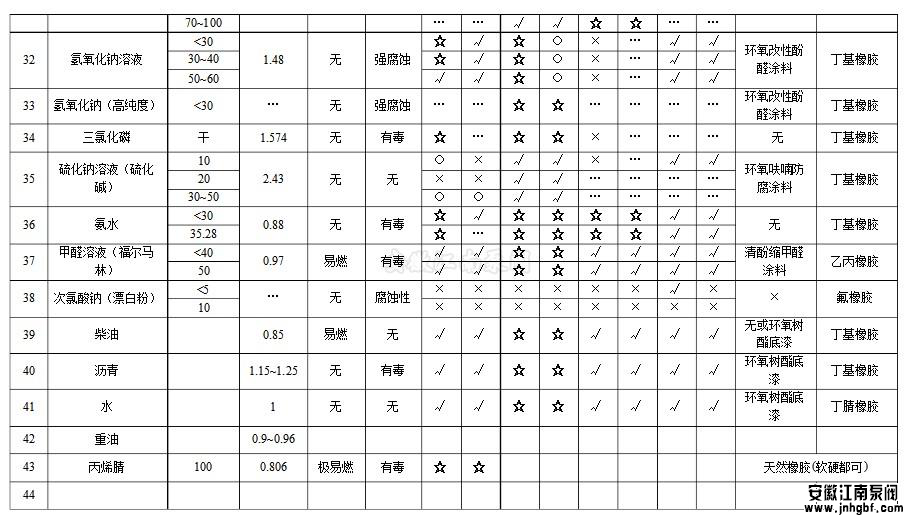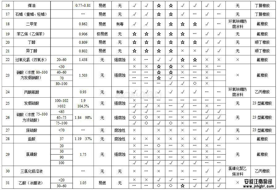 化工泵常輸送液體比重一覽表...